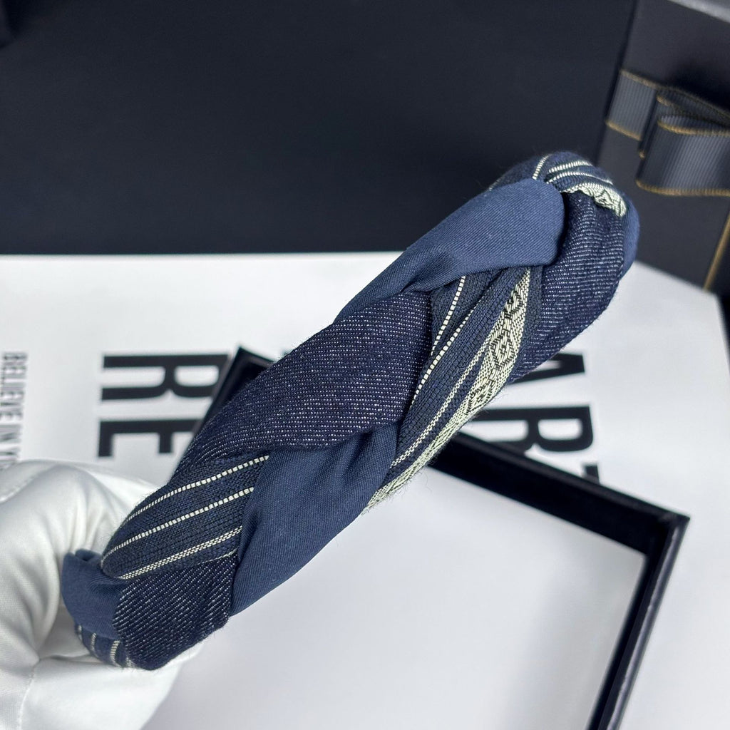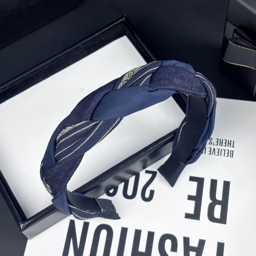 Artisan-Woven Navy Blue Headband with Textured Braid Detail