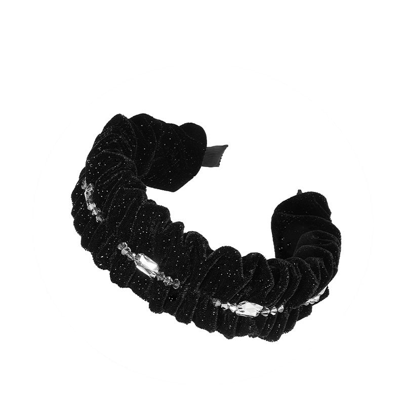 This headband embodies quiet luxury: not flashy, but unmistakably intentional. The plush velvet surface catches light softly, while its structured yet flexible base conforms naturally to the head without slipping or pinching. Unlike thin or overly rigid alternatives, its generous width creates dimension and presence—perfect for those seeking subtle height and refined polish. Whether worn with sleek low buns, soft waves, or even over dry shampoo days, it transforms simple hair into an intentional statement. Inspired by natural motifs and modern minimalism, the scattered star detail is understated and poetic—not literal or costume-like—making it appropriate for both professional settings and relaxed weekends.