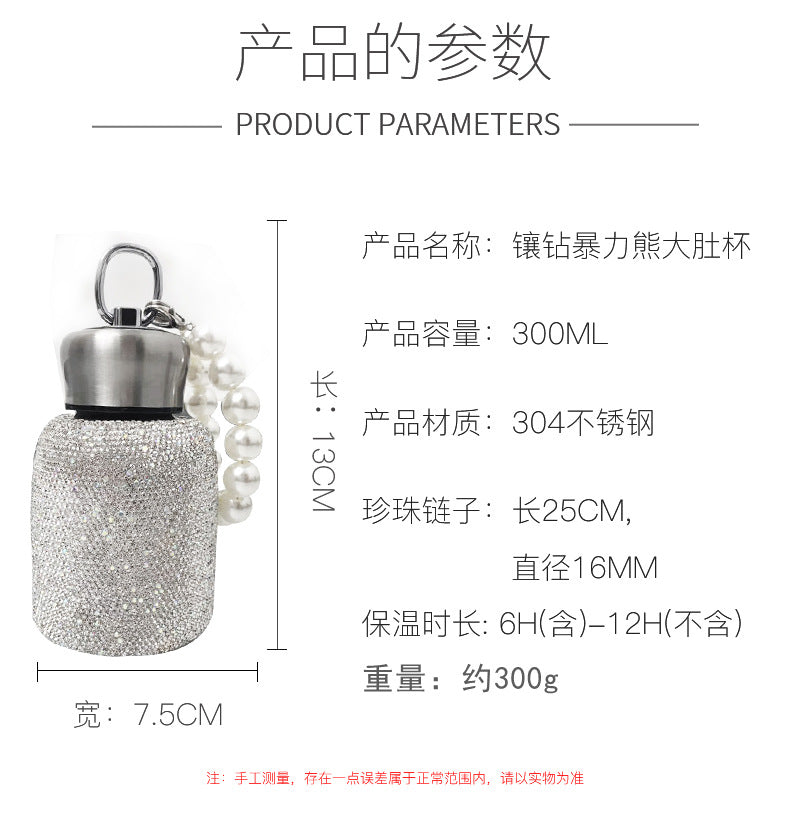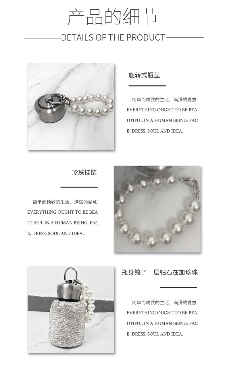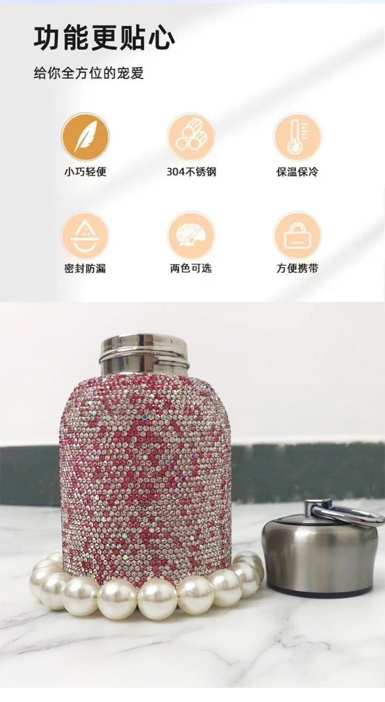 Pearl-Embellished Stainless Steel Insulated Tumbler – 300ml Portable保温 Cup with Carry Handle