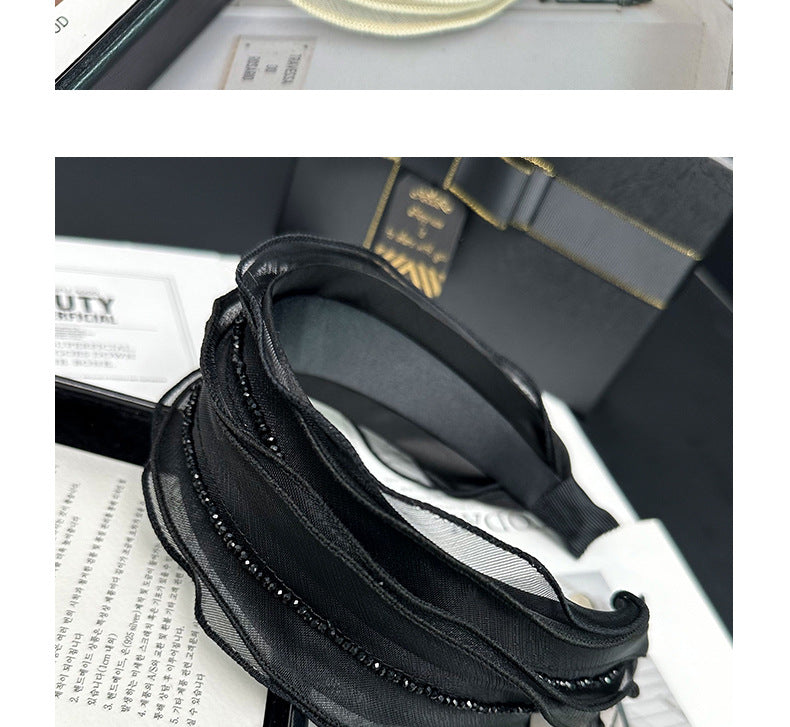Elegant Mesh Hair Band with Sparkling Crystal Accents – Minimalist Cold-Tone Style