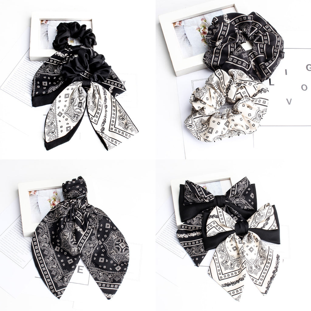 Absolutely. All items share the same print language and color balance — black scrunchies pair beautifully with white headbands, and vice versa.