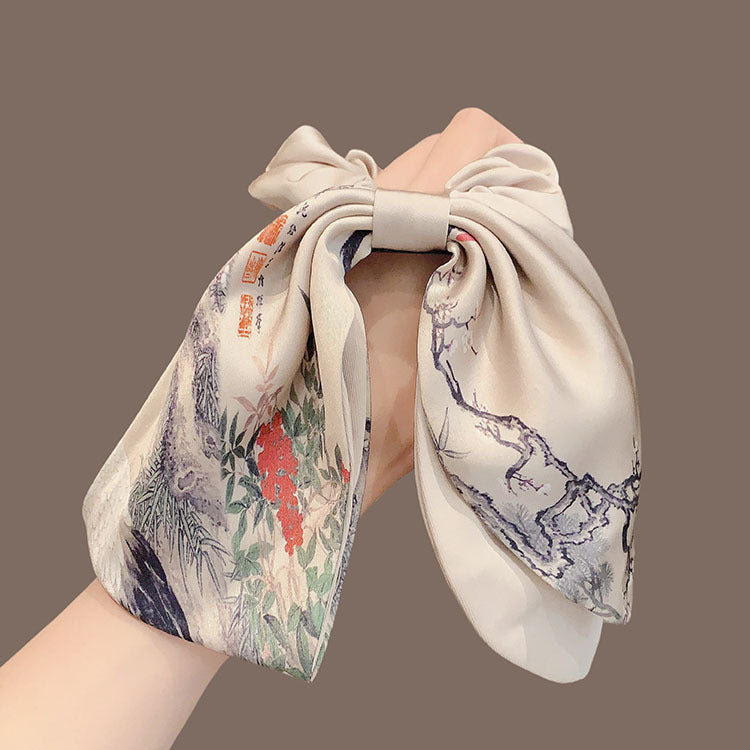 Elevate your everyday styling with the SUUMEE Chinese-Inspired Satin Hair Tie — a refined fusion of East Asian artistry and modern hair accessory design. Inspired by classical ink-wash painting traditions, each piece features subtle, hand-crafted motifs rendered in soft, lustrous satin fabric. The oversized bow and cascading ribbon detail add graceful movement and quiet sophistication — perfect for work, brunch, or weekend strolls.