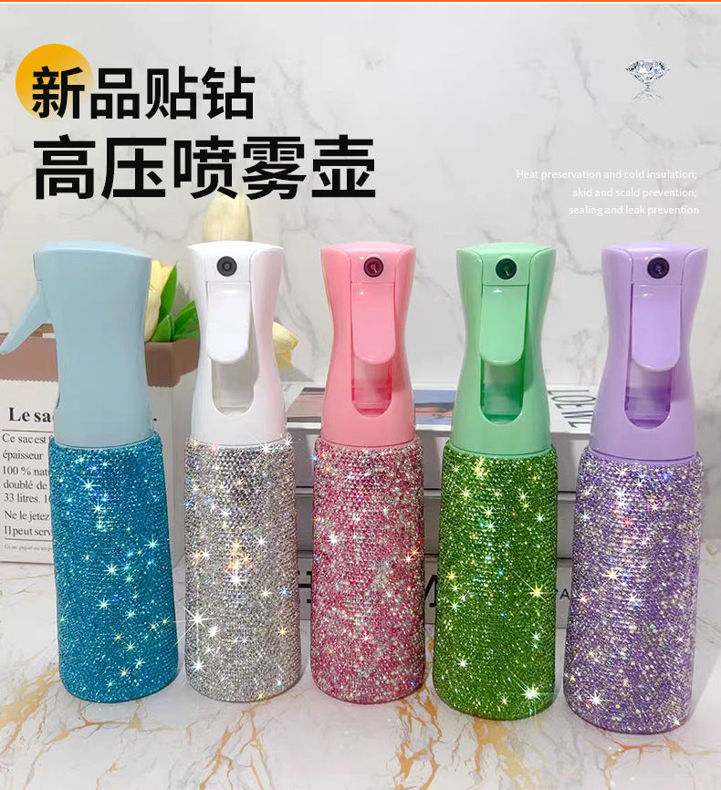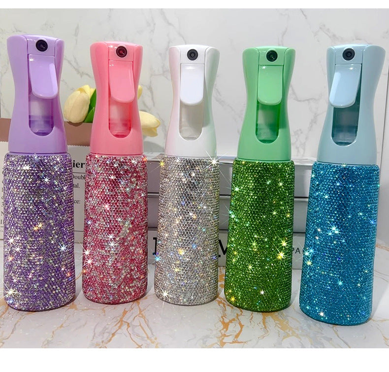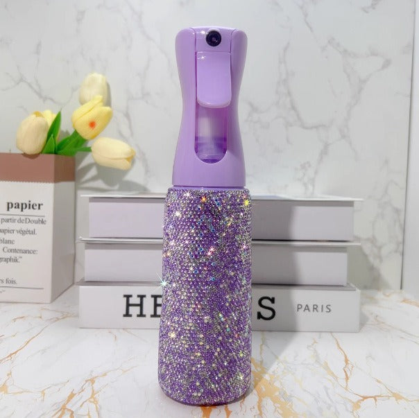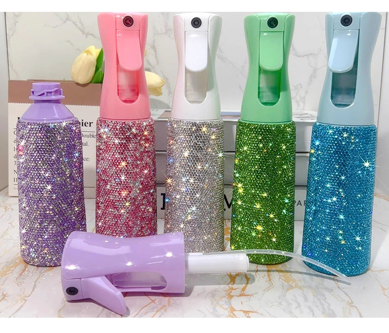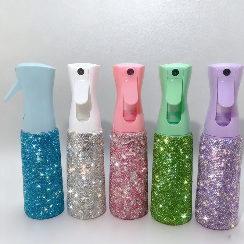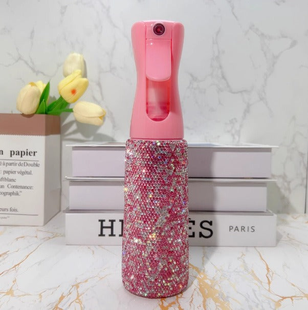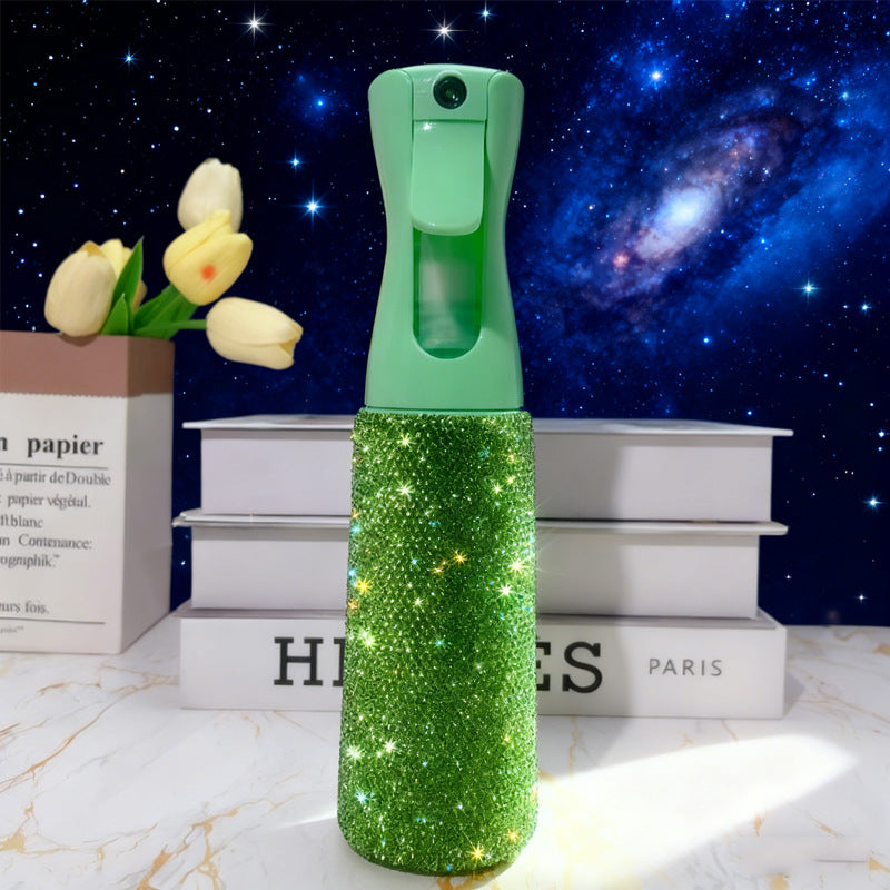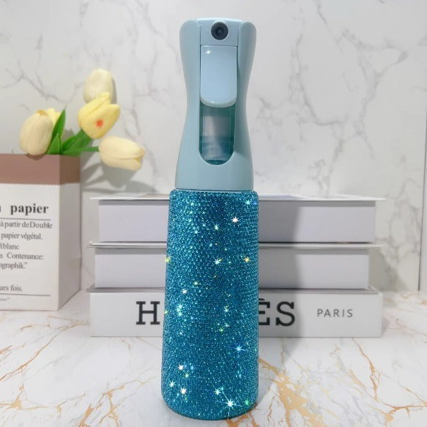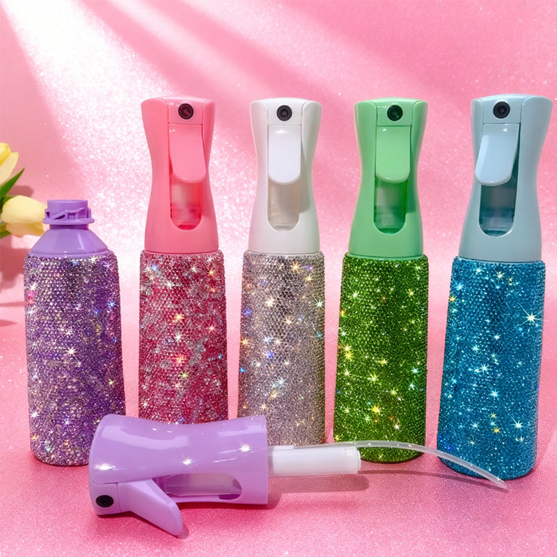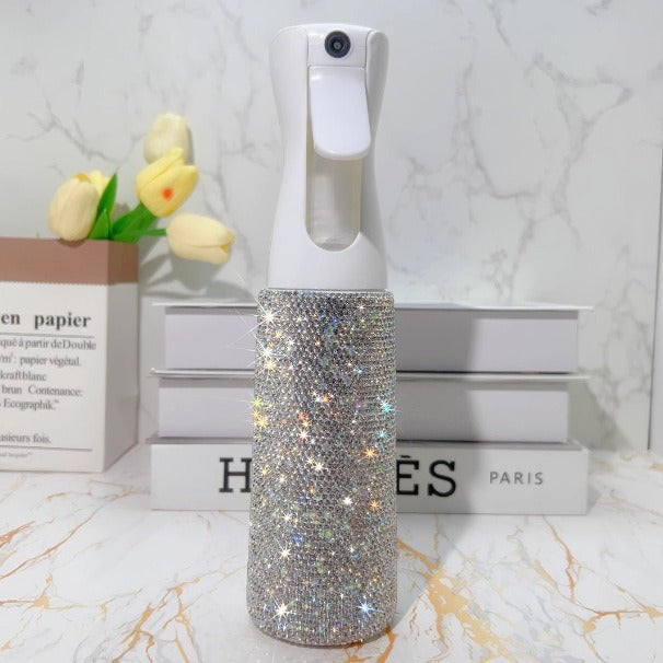 Luxury Crystal-Embellished High-Pressure Mist Spray Bottle – 300ml Refillable Facial Toner Dispenser