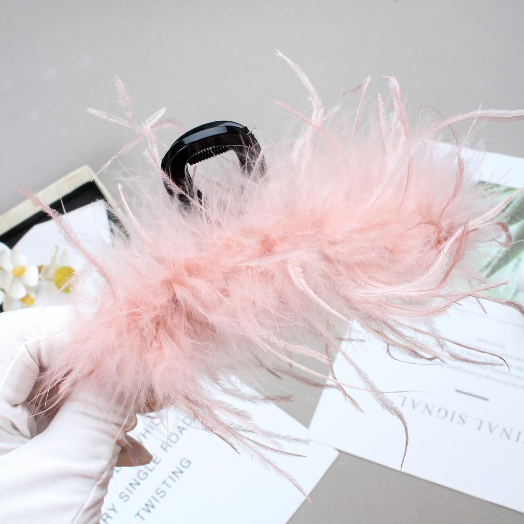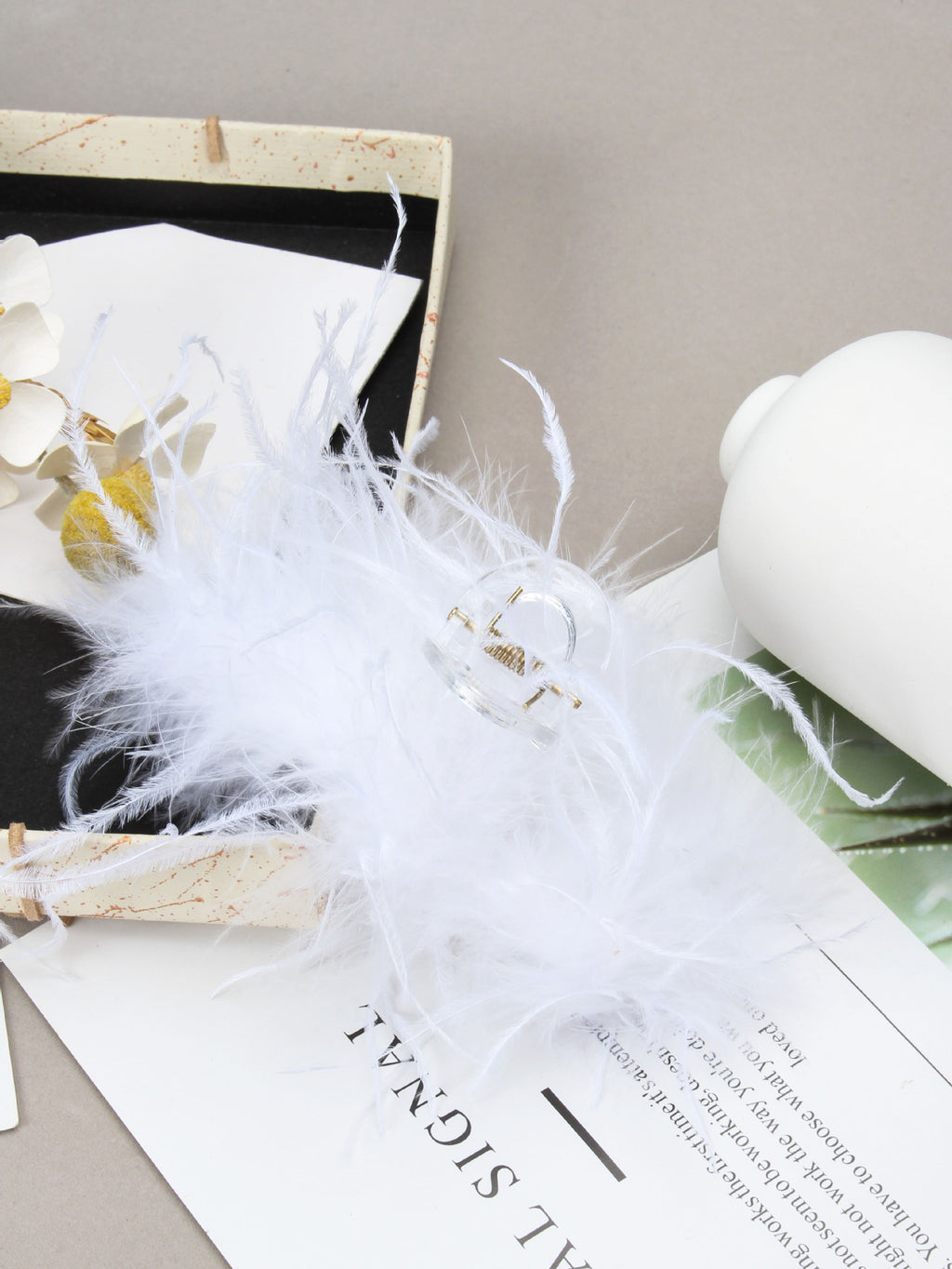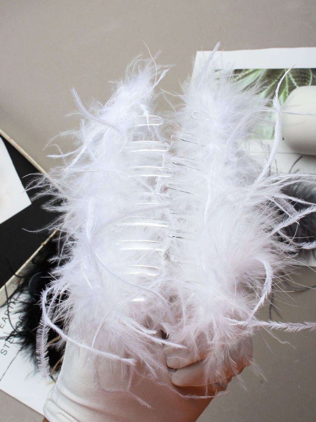 Slide the shark clip into place at the crown or nape for a polished half-up style, or use it to anchor a low chignon. Avoid excessive moisture or direct heat exposure. Gently dust feathers with a soft makeup brush; store flat in its original box away from direct sunlight to preserve texture and color integrity.