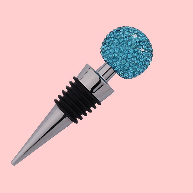 Answer 4: The lake-blue stopper features an alloy top cap paired with a silicone body — offering a balanced blend of metallic elegance and flexible, secure sealing.